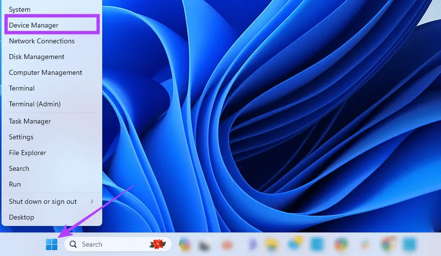 هنگامی که دستگاه ویندوز 11 شما GPU را تشخیص نمی دهد، ممکن است با کنترلر PCIe مشکل داشته باشید که اسلات های PCIe را روی مادربرد مدیریت می کند..تداخل دستگاه ها دلیل اصلی این مشکل درایور است.باید به طور موقت هر دستگاه PCIe اضافی را غیرفعال کنید.این ها اغلب در Device Manager پنهان می شوند. مرحله 1: روی منوی Start کلیک راست کرده و روی Device Manager کلیک کنید.