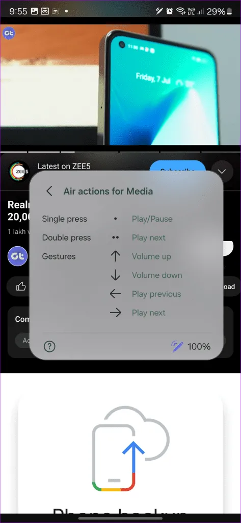 یکی دیگر از مزایای استفاده از قلم S این است که کنترل های رسانه درست در نوک انگشتان شما هستند.کنش های هوا به شما امکان میدهند بازی/مکث، رد کردن آهنگ و تنظیم صدا را در حال حرکت انجام دهید.اسکرین شات زیر را بررسی کنید تا نگاهی اجمالی به عملکردهای مختلف Air در اختیارتان هنگام استفاده از S Pen در Galaxy S24 Ultra داشته باشید..