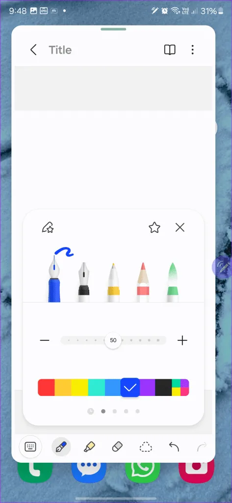 یکی دیگر از ادغام S Pen در صفحه قفل است.سامسونگ آن را «یادداشتهای خاموش صفحه» مینامد و این یکی از ویژگی های ضروری برای یادداشت برداران مکرر است. مرحله 1: Galaxy S24 Ultra خود را بردارید، قلم S Pen را بیرون بیاورید و صفحه قفل شما به یک دفترچه یادداشت تبدیل می شود.به این ترتیب، شما انجام می دهید. مرحله 2: همچنین می توانید رنگ قلم را از منوی بالا تغییر دهید.پس از اتمام کار، قلم S خود را دوباره در شکاف قرار دهید تا گوشی هوشمند یادداشت سریع شما را به طور خودکار در برنامه Notes ذخیره کند..