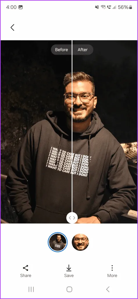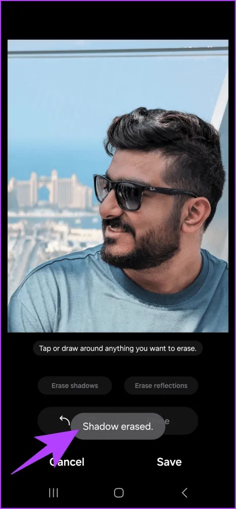 اگر میخواهید سایه ها را حذف کنید، روی آن ضربه بزنید. .سپس می توانید با ضربه زدن روی Save تصویر را ذخیره کنید.