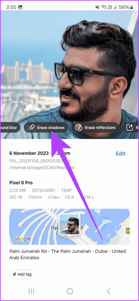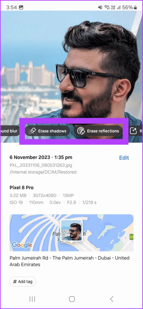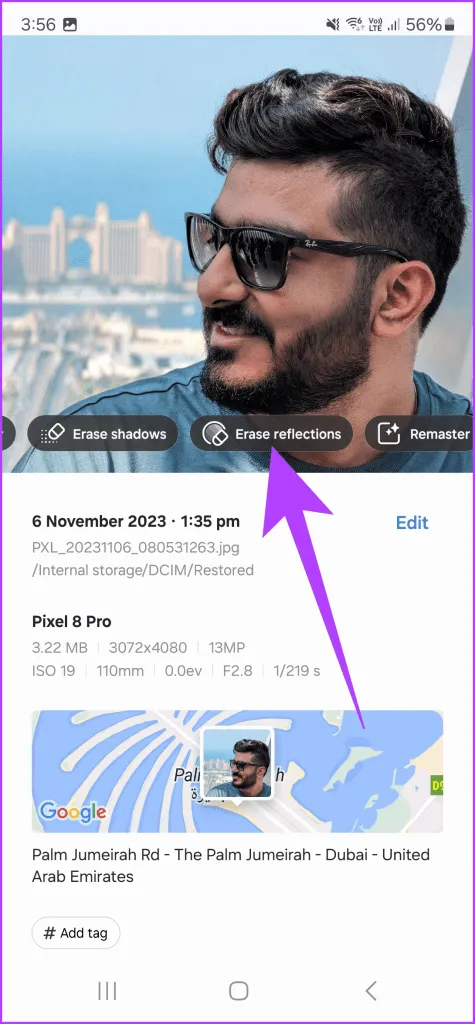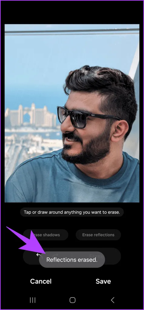 به طور مشابه، برای حذف بازتاب ها، روی آن ضربه بزنید.هوش مصنوعی تمام انعکاس ها را از تصویر جستجو کرده و حذف می کند.