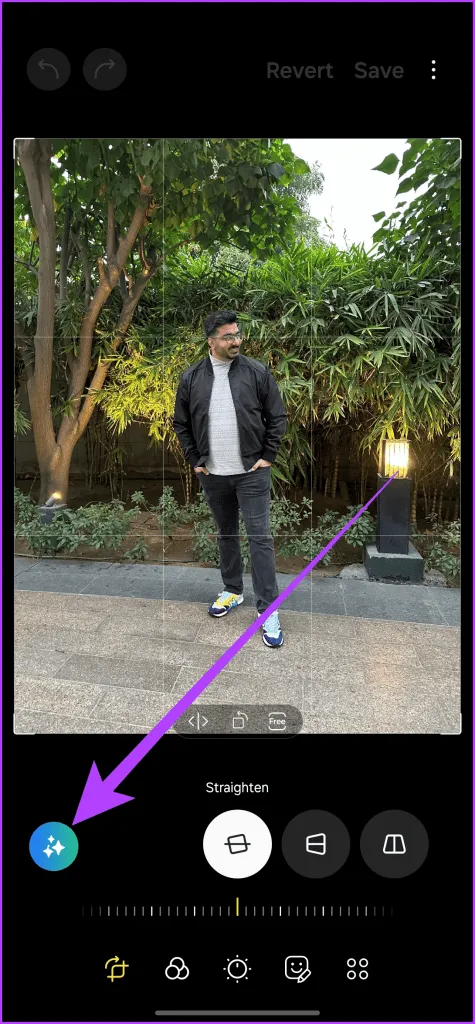 در نهایت، وجود دارد.با استفاده از این، می توانید اندازه، حذف و تغییر موقعیت اشیاء در عکس ها را تغییر دهید، و ویژگی ویرایش عکس Generative تصویر را به طبیعی ترین حالت باز می سازد..برای استفاده از آن، تصویر را در داخل برنامه گالری باز کنید و روی نماد ویرایش ضربه بزنید.سپس، مطابق شکل، روی نماد ویرایش تولیدی ضربه بزنید.