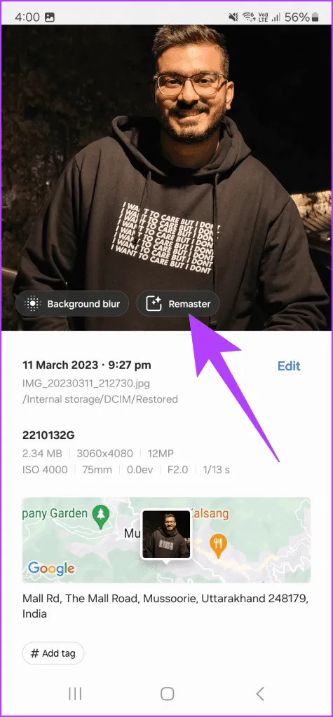 علاوه بر این ها، سری گلکسی اس 24 همچنین دارای ویرایش گر پیشرفته ای است که می تواند با یک ضربه جان تازه ای به عکس های قدیمی شما ببخشد..سامسونگ آن را ویژگی Remaster می نامد و آن را.تصور کنید که عوامل مختلفی مانند روشنایی، تن رنگ، ساختار و بسیاری موارد دیگر را ویرایش کنید.به جای اینکه شما این کار را در یک ویرایشگر عکس انجام دهید، تلفن شما این کار را به طور خودکار برای شما انجام می دهد.برای استفاده از آن، تصویری را که میخواهید ویرایش کنید باز کنید و روی نماد اطلاعات ضربه بزنید.سپس بر روی گزینه Remaster ضربه بزنید.