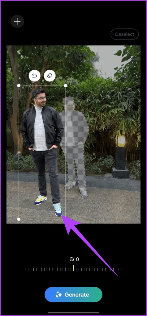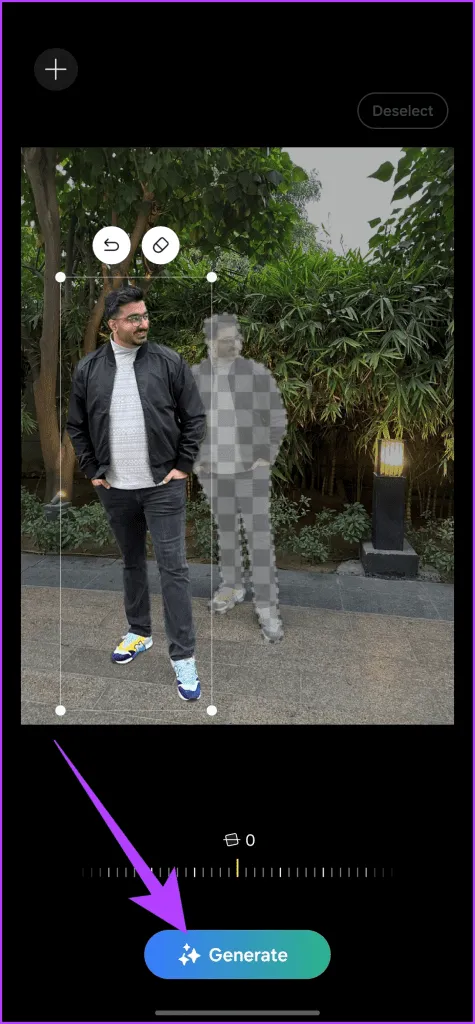 هنگامی که از تغییرات راضی شدید، روی دکمه Generate ضربه بزنید.سپس هوش مصنوعی فضاهای باقیمانده تصویر را پر می کند.