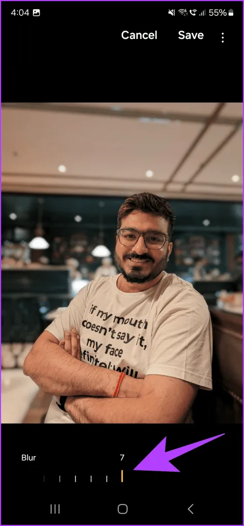 اکنون تلفن باید موضوع را تجزیه و تحلیل کند و به طور خودکار به شما این امکان را می دهد که بوکه پس زمینه را از سطوح 0 تا 7 تنظیم کنید..هرچه این عدد بیشتر باشد، تاری پس زمینه بیشتر خواهد بود.