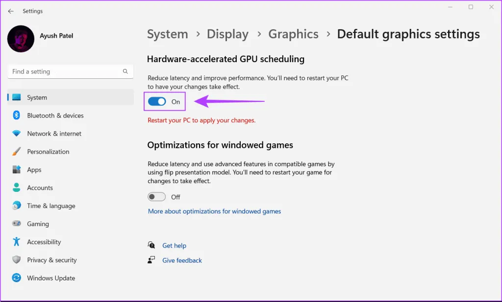 اکنون که سیستم خود را آماده کرده اید، آن را انجام دهید. استفاده از AMD FSR3 در پردازنده\u200cهای گرافیکی NVIDIA RTX مرحله 1: ابتدا با رفتن به تنظیمات ویندوز سیستم نمایشگر گرافیک تنظیمات گرافیکی پیشفرض، برنامه ریزی پردازش گرافیکی با شتاب سختافزار را فعال کنید..ضامن را فعال کرده و کامپیوتر خود را مجددا راه اندازی کنید تا تغییرات اعمال شود.