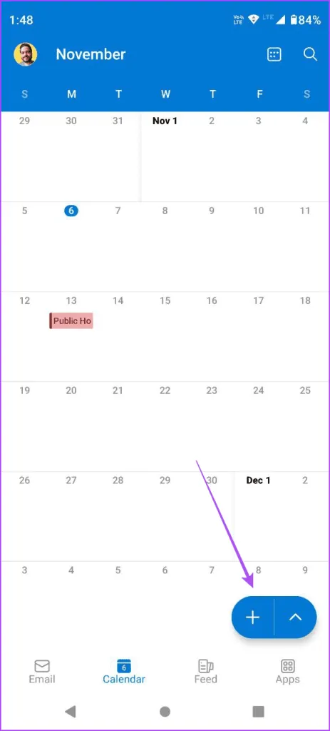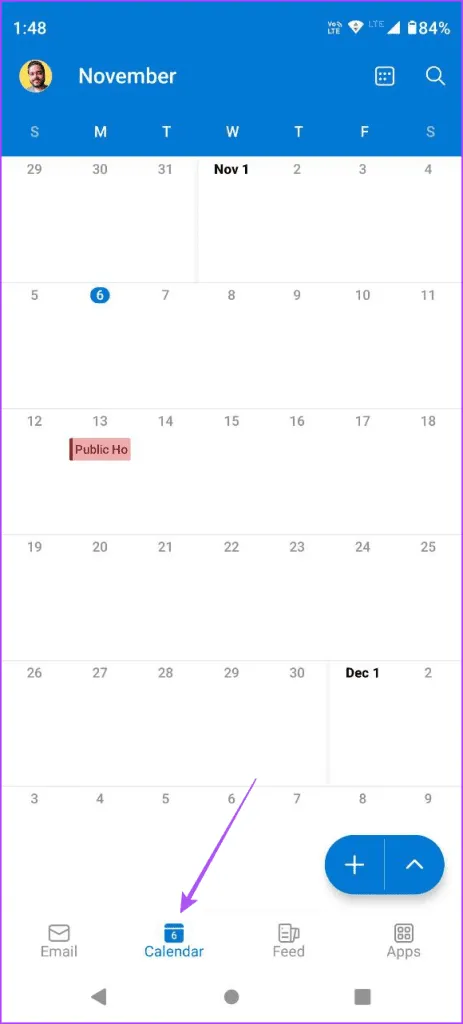می توانید یک تعطیلات را به عنوان یک رویداد در تقویم فعلی خود اضافه کنید.مراحل برای برنامه Outlook در اندروید و آیفون یکسان است. مرحله 1: برنامه Outlook را در iPhone یا Android خود باز کنید و روی Calendar در پایین ضربه بزنید.