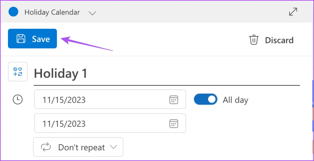 مرحله 3: جزئیات تعطیلات خود را وارد کنید و آن را به عنوان یک رویداد تمام روز فعال کنید.