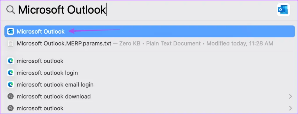 در نهایت، اجازه دهید مراحل افزودن و حذف تعطیلات را در برنامه Outlook Calendar برای کاربران مک به شما نشان دهیم..تقویم outhook مرحله 1: میانبر صفحه کلید Command Spacebar را فشار دهید تا Spotlight Search باز شود، Microsoft Outlook را تایپ کنید و Return را فشار دهید.
