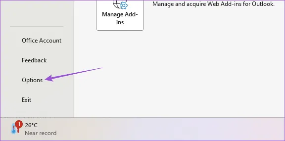 مرحله 3: از منوی سمت چپ روی گزینه ها کلیک کنید.