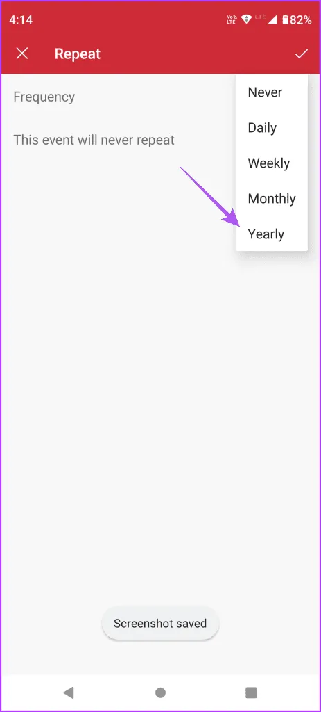 همچنین می توانید روی Repeat ضربه بزنید و تعطیلات را روی تکرار سالیانه تنظیم کنید.
