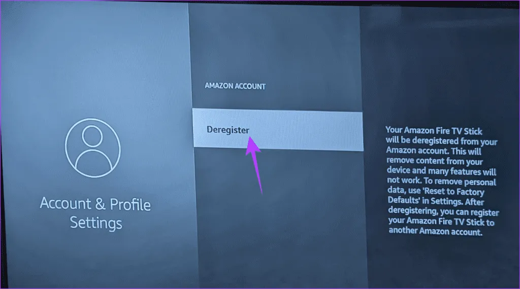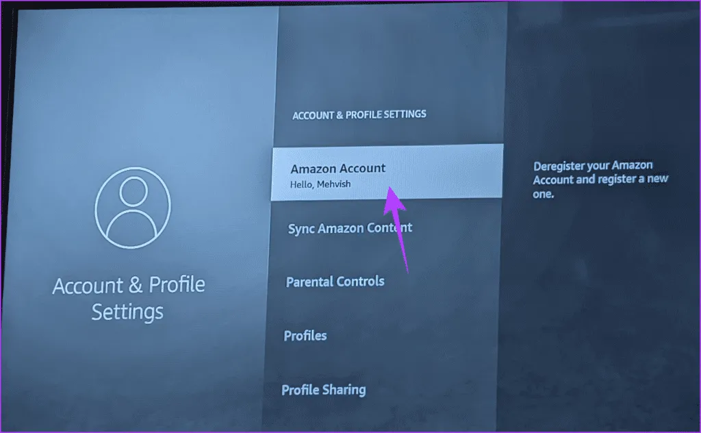 مراحل لغو ثبت حساب آمازون در Fire TV