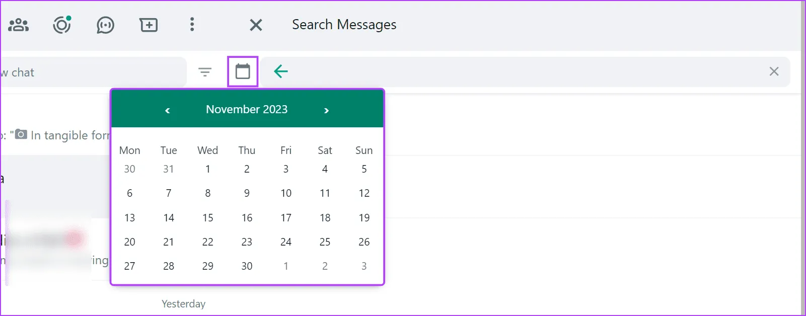 واتس اپ اخیرا قابلیت جدیدی را راه اندازی کرده است که به شما امکان می دهد پیام ها را بر اساس تاریخ جستجو کنید.برای این کار واتس اپ را باز کنید و به جستجوی پیام بروید.پس از باز شدن، از نماد تقویم برای جستجوی پیام بر اساس تاریخ در WhatsApp استفاده کنید.اینجا.