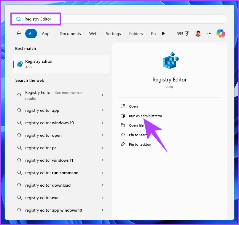 این روش پیچیده تر از روش فوق است، اما مراحل انجام آن ساده است.با این حال، از آنجایی که ما از ویرایشگر رجیستری استفاده خواهیم کرد، توصیه می کنیم قبل از انجام مراحل زیر از رجیستری ویندوز نسخه پشتیبان تهیه کنید. مرحله 1: کلید Windows را روی صفحه کلید خود فشار دهید، تایپ کنید.exe، و روی OK کلیک کنید تا ویرایشگر رجیستری باز شود.
