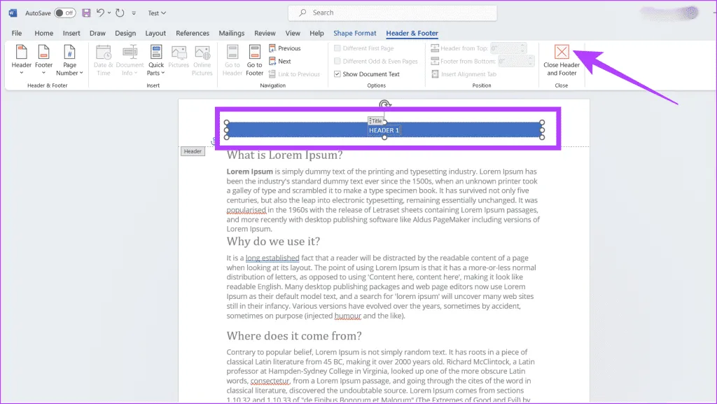 مرحله 5: قسمت سرصفحه و پاورقی را ویرایش کنید.مرحله 6: در نهایت، روی.توجه: می توانید روی سند دوبار کلیک کنید.