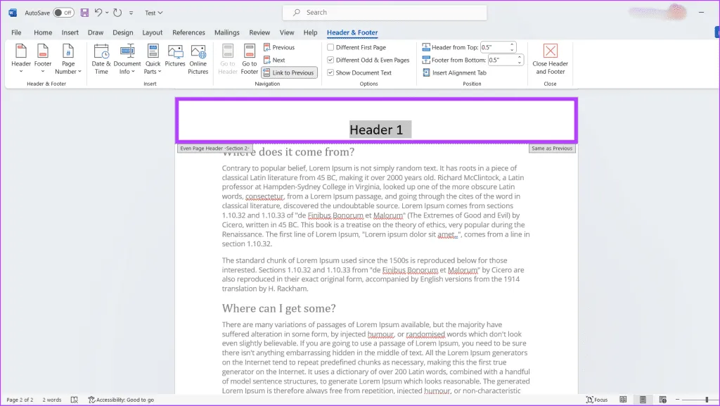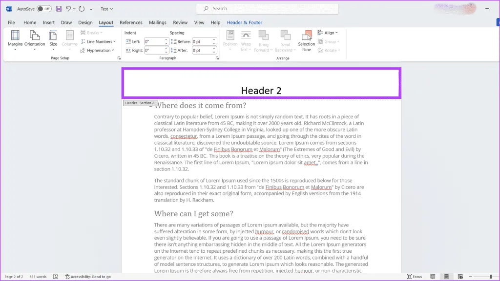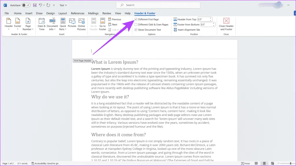 ایجاد هدر و پاورقی مختلف در صفحات خاص آسان است، اما قبل از آن، شما.مراحل زیر را رعایت کنید:.