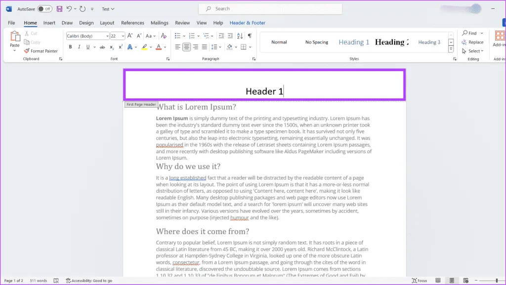 مرحله 6: اکنون سرصفحه یا پاورقی صفحه اول خود و سایر هدرها و پاورقی ها را در بقیه صفحات تایپ کنید. مرحله 7: در نهایت، Ctrl S را فشار دهید تا تغییرات در سند شما ذخیره شود.