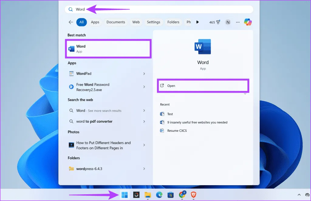 هنگام کار بر روی اسناد با صفحات عنوان مجزا یا انتقال بین بخش های مختلف، برای افزودن سرصفحه یا پاورقی در صفحه اول، مراحل زیر را رعایت کنید: مرحله 1: Windows S را فشار دهید، Word را تایپ کنید و روی Open کلیک کنید..