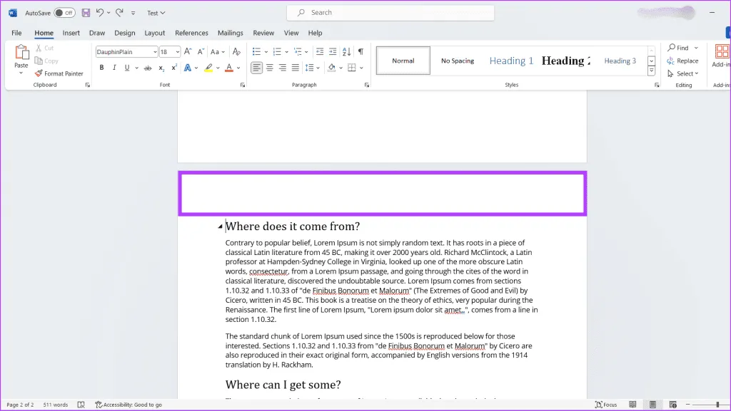 بخش شکست یک نشانگر نامرئی در سند Word شما است که به شما امکان می دهد محتوای خود را به بخش های جداگانه تقسیم کنید مرحله 1