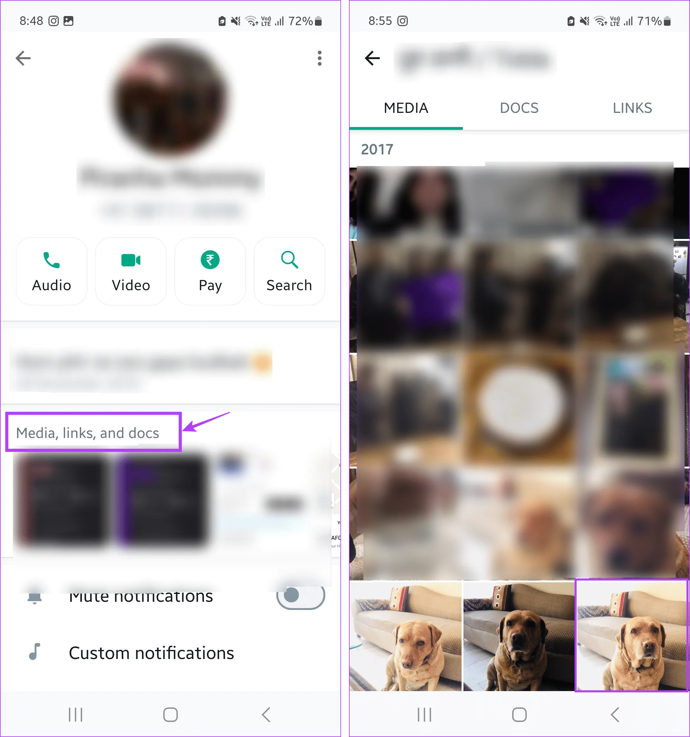 اگر مرتباً رسانه هایی مانند تصاویر یا ویدیوها را با سایر کاربران رد و بدل میکنید، میتوانید از آن به عنوان راهی سریع برای پیمایش پیامهای WhatsApp استفاده کنید..اولین رسانه خود را باز کنید.سپس، از آن برای رفتن به اولین پیام مربوط به آن چت در WhatsApp استفاده کنید. مرحله 1: واتس اپ را باز کنید و روی چت مربوطه ضربه بزنید. مرحله 2: در اینجا، روی نام مخاطب یا گروه ضربه بزنید.