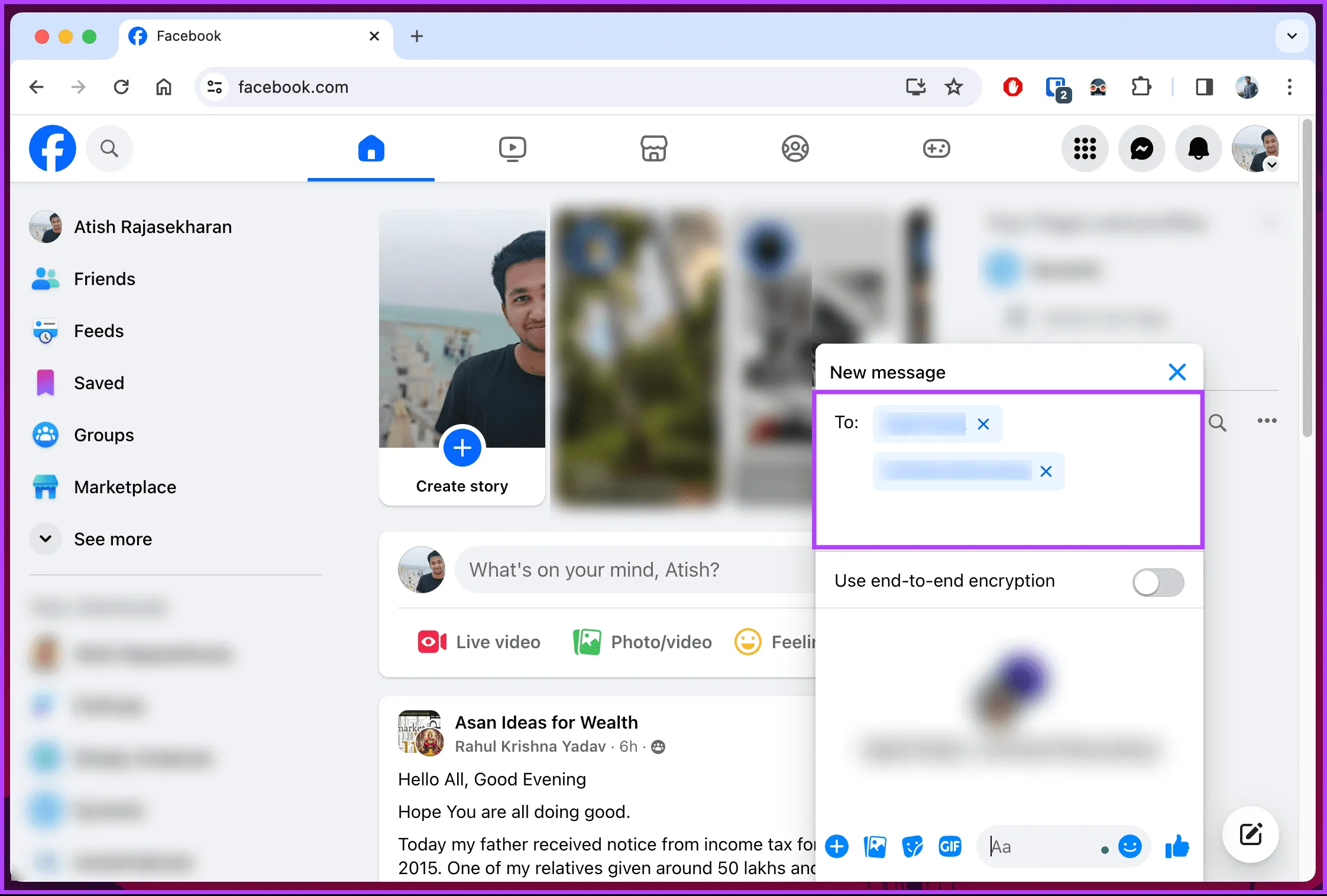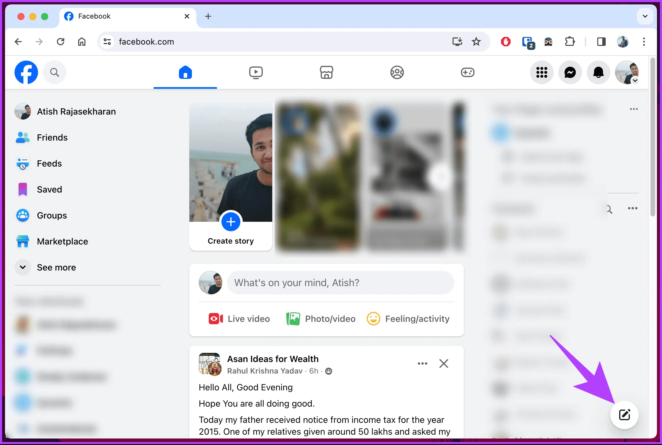 این روش شامل ایجاد یک چت گروهی بین شما و دوستانتان است که می خواهید به آن متصل شوید.اگرچه این گروه می تواند در هر جایی وجود داشته باشد (مثلاً واتس اپ یا تلگرام)، توصیه می کنیم از فیس بوک مسنجر استفاده کنید.مراحل زیر را دنبال کنید. مرحله 1: فیس بوک را در مرورگر دلخواه خود باز کنید و با اعتبار حساب خود وارد شوید.فیس بوک را باز کنید مرحله 2: پس از راه اندازی، روی نماد شناور پیام جدید در گوشه سمت راست پایین صفحه کلیک کنید..