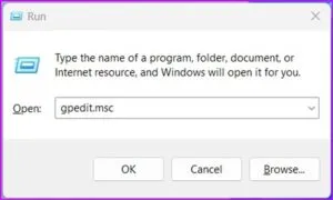 مرحله 1: کلیدهای Windows + R را فشار دهید تا پنجره Run باز شود و gpedit.msc را در قسمت متن تایپ کنید. سپس، Enter را فشار دهید.