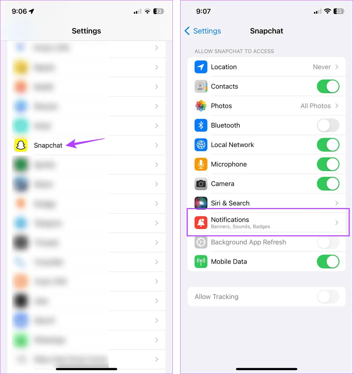 مرحله 1: برنامه تنظیمات را باز کنید.سپس به پایین اسکرول کنید و روی Snapchat ضربه بزنید. مرحله 2: روی Notifications ضربه بزنید.