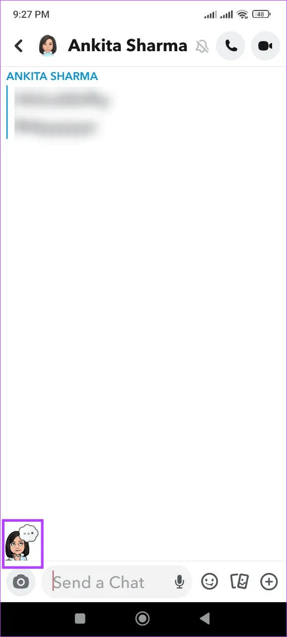 مرحله 1: برنامه موبایل اسنپ چت را باز کنید و روی نماد چت ضربه بزنید.سپس، روی بیتموجی برای کاربر مربوطه ضربه بزنید.