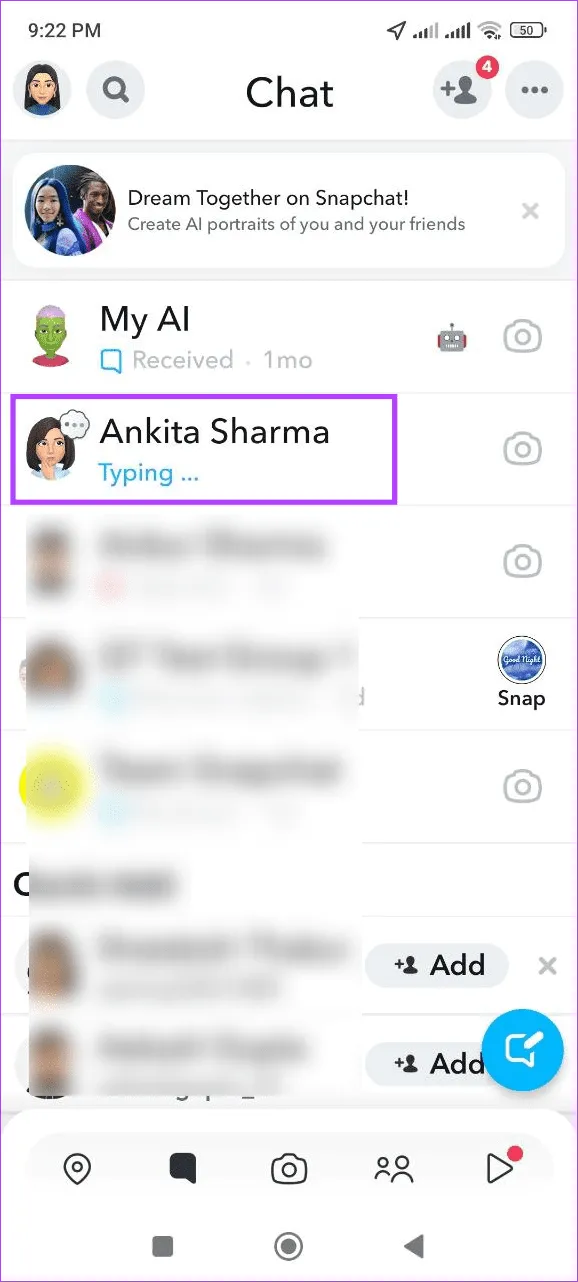 چه زمانی اسنپ چت می گوید کسی در حال تایپ کردن است.