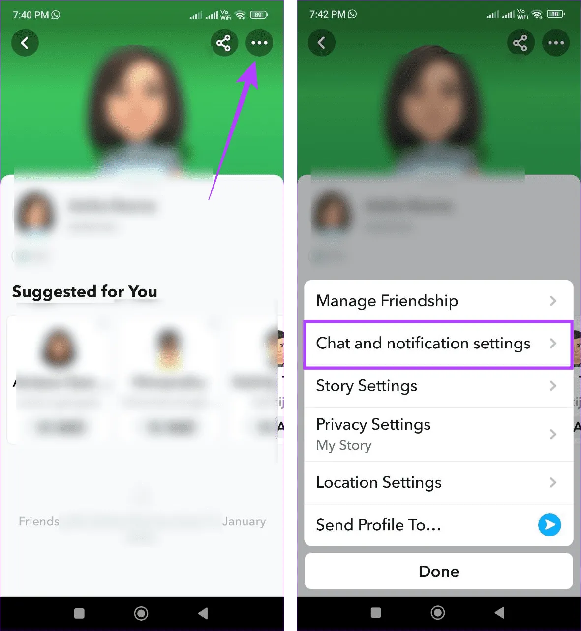 از آنجایی که درخواست تایپ در اسنپ چت به عنوان یک اعلان طبقه بندی می شود، غیرفعال کردن اعلان ها برای کاربر مربوطه می تواند به شما کمک کند تا اعلان های تایپ اسنپ چت را نیز خاموش کنید..و اگر می خواهید این کار را برای همه انجام دهید، تمام اعلان های اسنپ چت را غیرفعال کنید.بهعلاوه، میتوانید اعلانهای Snapchat را از دستگاه خود نیز خاموش کنید.برای انجام آن مراحل زیر را دنبال کنید.