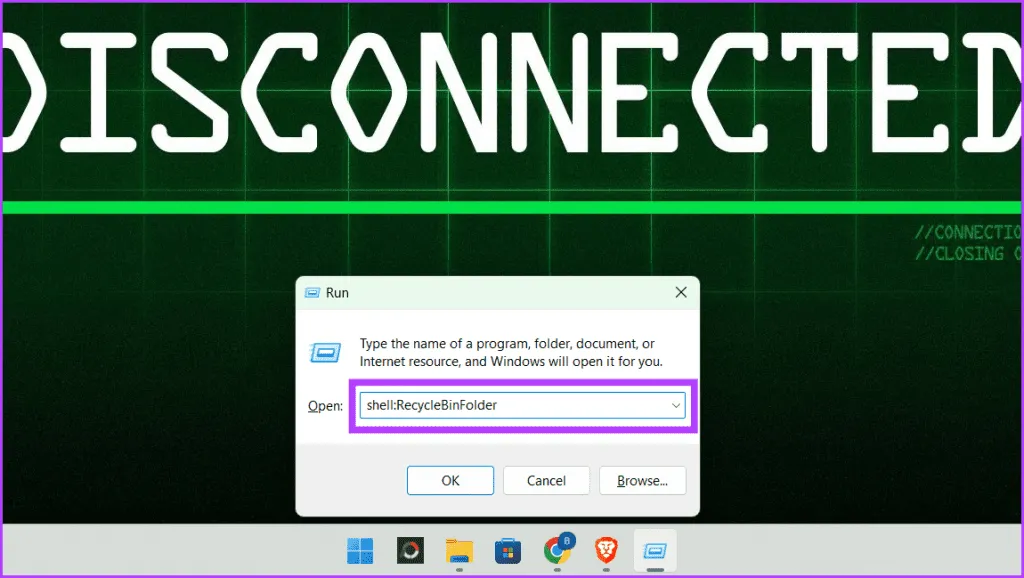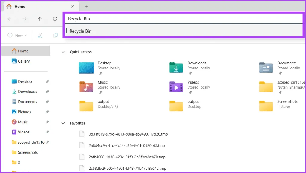 مرحله 2: در نوار آدرس، Recycle Bin را بنویسید و Enter را فشار دهید.