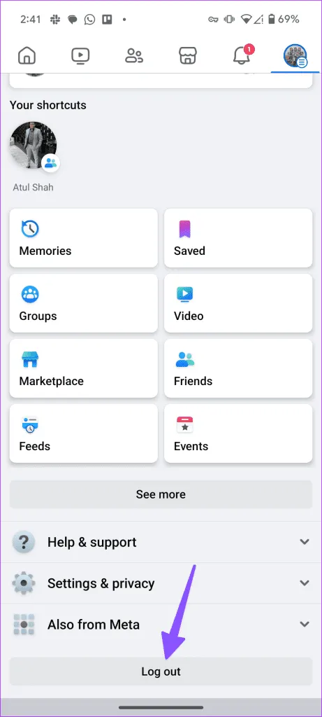 عدم کارکرد دوستیابی فیس بوک می تواند به دلیل مشکلات احراز هویت حساب کاربری باشد.باید از حساب خود خارج شوید و دوباره وارد شوید. مرحله 1: به تنظیمات بروید. مرحله 2: به پایین بروید و Log out را بزنید.