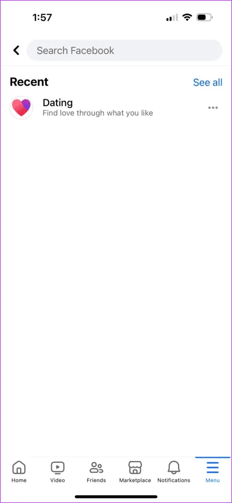 1.گزینه دوستیابی فیس بوک را پیدا کنید.