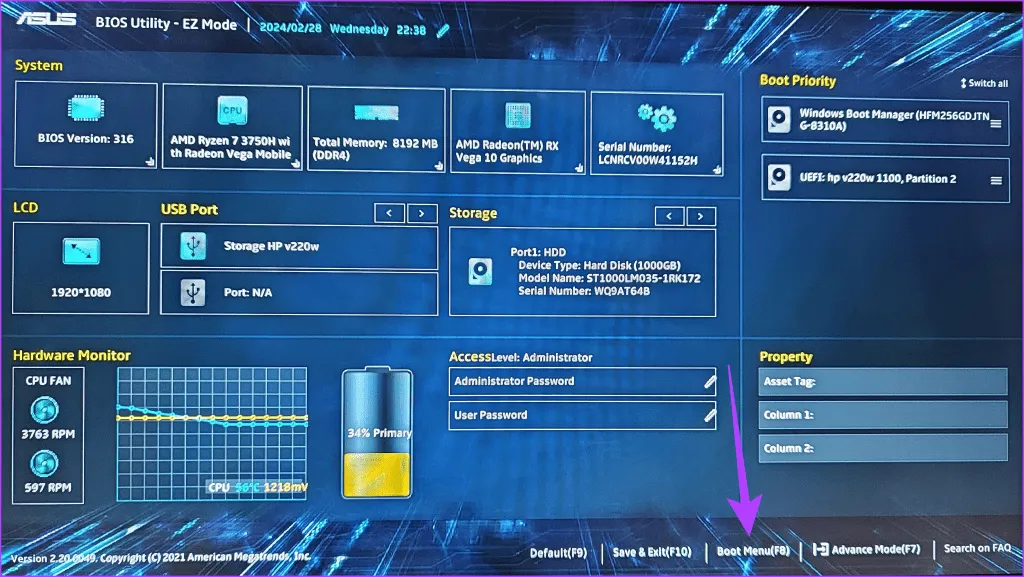 مرحله 4: USB را به عنوان دستگاه بوت اصلی تنظیم کنید و Enter را فشار دهید.