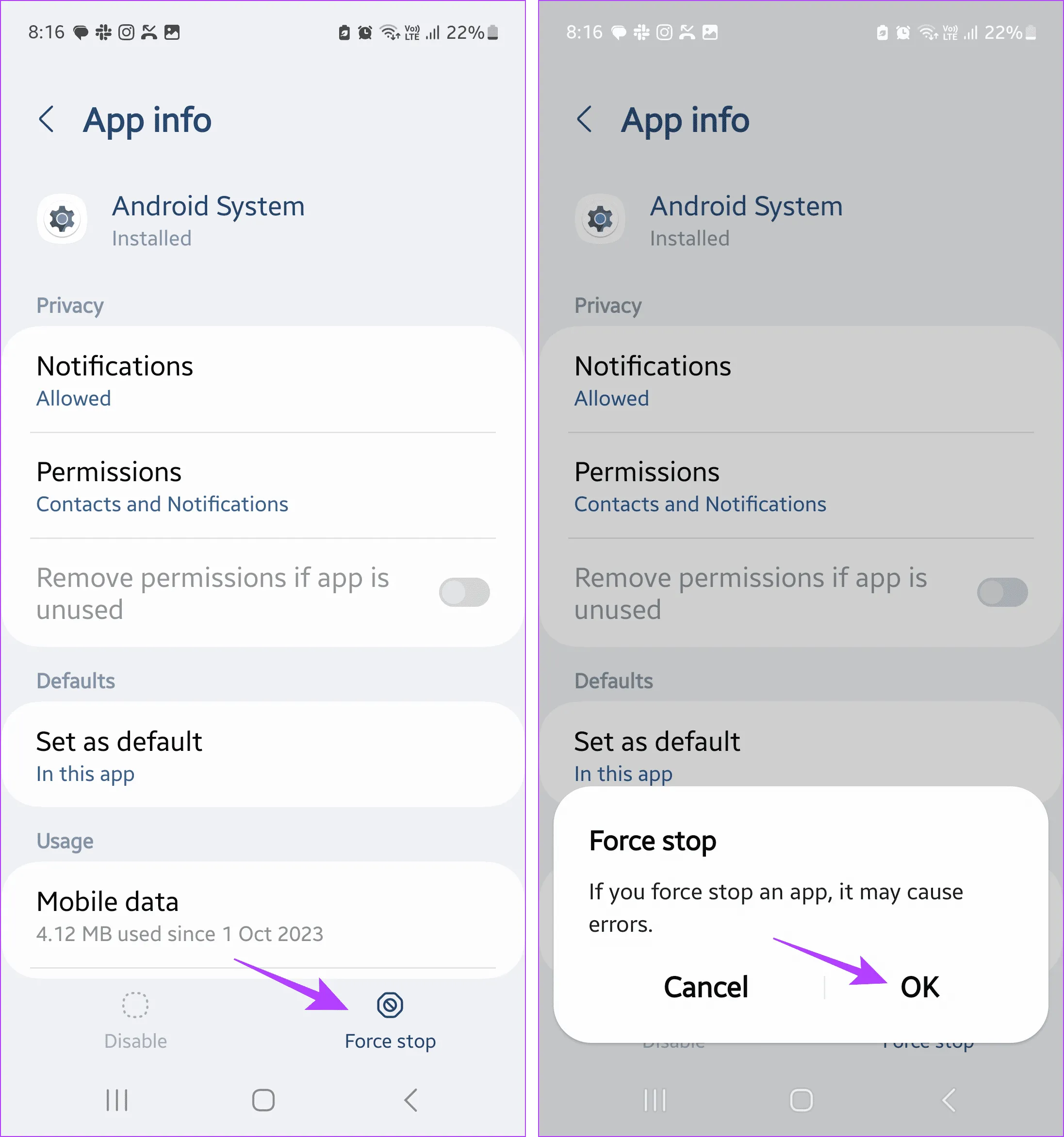 مرحله 5: در اینجا، بر روی توقف اجباری ضربه بزنید.وقتی از شما خواسته شد، روی OK ضربه بزنید.
