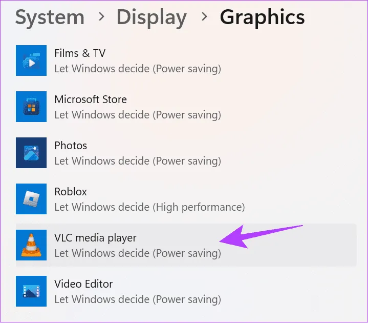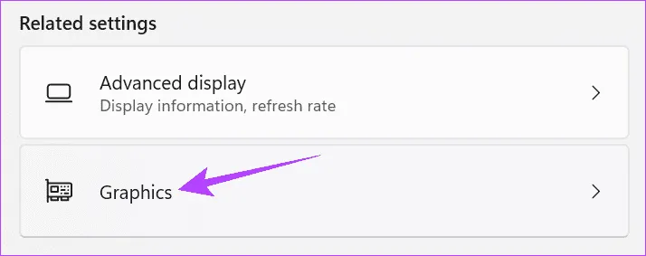 مرحله ۲: از اینجا، Graphics را انتخاب کنید و به پایین بروید تا همه برنامههای موجود در سیستم خود را با استفاده از GPU ببینید..