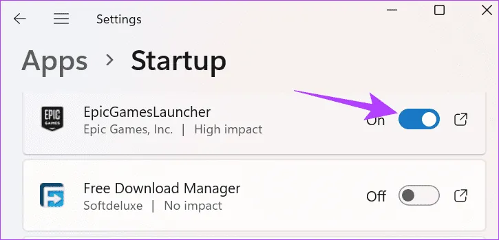 مرحله 2: برنامهای را که میخواهید در هنگام راهاندازی باز نشدن آن متوقف شود را پیدا کنید و کلید کنار آن را خاموش کنید.