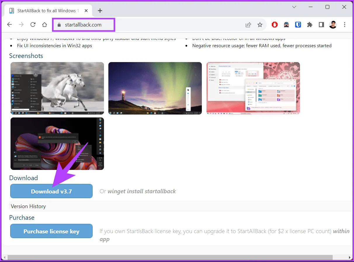 ابزارهای شخص ثالث زیادی برای حذف گروه بندی موارد نوار وظیفه در ویندوز 11 وجود دارد.یکی از این ابزارها StartAllBack است.این ابزار به شما کمک می کند طرح بندی را پیکربندی کنید و تنظیمات برگزیده خود را تنظیم کنید، و رایانه شما را قادر می سازد هرگز دکمه های نوار وظیفه را ترکیب نکند..بیایید با مراحل شروع کنیم .مرحله 1: از مرورگر دلخواه خود به وب سایت StartAllBack بروید و برنامه را دانلود کنید.به StartAllBack بروید.