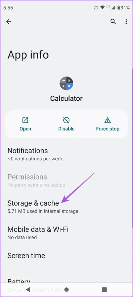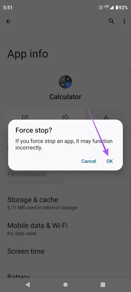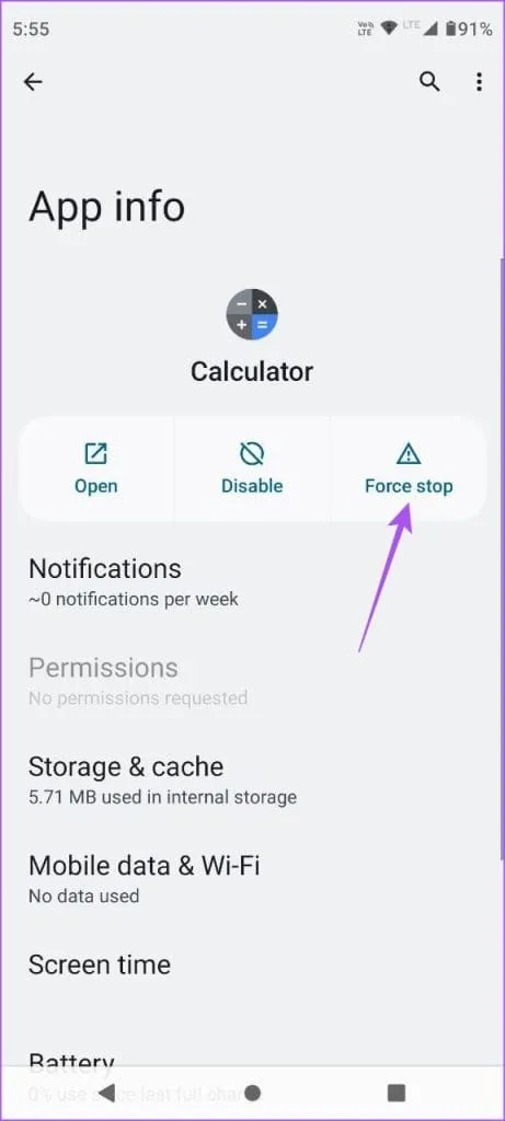 مرحله 4: App Info را ببندید و برنامه Calculator را باز کنید تا بررسی کنید که آیا مشکل حل شده است یا خیر.