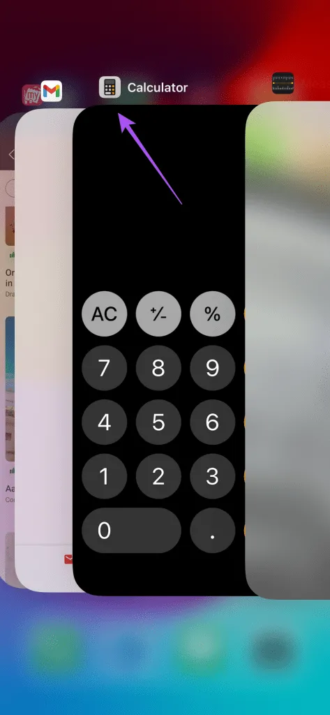 مرحله 1: در صفحه اصلی، انگشت خود را به سمت بالا بکشید و نگه دارید تا پنجره های برنامه پس زمینه ظاهر شوند. مرحله 2: برای جستجوی برنامه Calculator، انگشت خود را به سمت راست بکشید.کارت برنامه را انتخاب کنید و انگشت خود را به سمت بالا بکشید تا برنامه حذف شود.