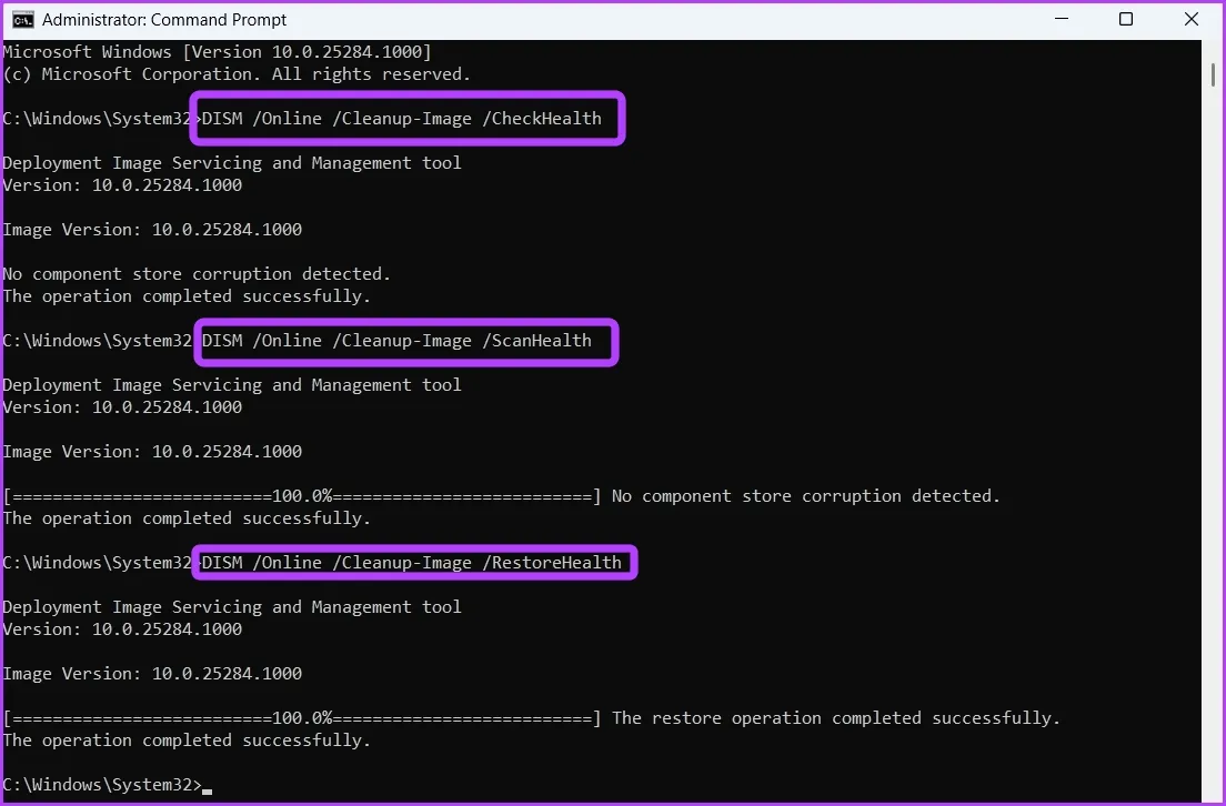2.رفع مشکلات تصویر ویندوز با اسکن DISM.