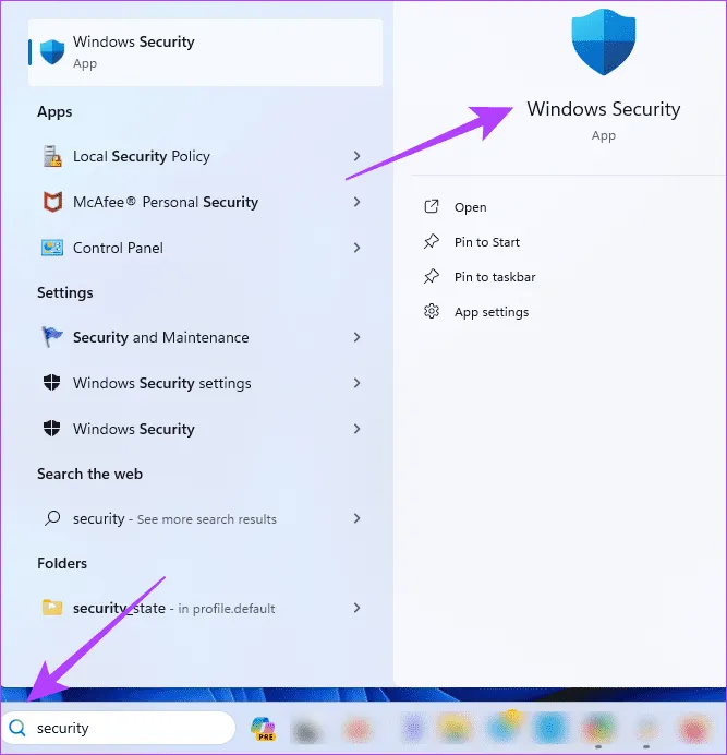 بدافزار یکی از دلایل اصلی مشکلات در رایانه ویندوز است.آنها می توانند ورودی های رجیستری را تغییر دهند یا خراب کنند تا عملکرد سیستم را مختل کنند، دسترسی غیرمجاز به دست آورند و حضور خود را پنهان کنند..با این حال، ویندوز 11 یک ابزار امنیتی دارد که می تواند شما را در برابر این ویروس ها محافظت کند.باید مطمئن شوید که فعال است و می توانید یک اسکن دقیق برای پاک کردن ویروس و هر گونه فسادی که ممکن است ایجاد کرده باشد انجام دهید..Broken egistry مرحله 1: روی لنز ذره بین در نوار وظیفه کلیک کنید تا جستجوی ویندوز باز شود، امنیت را تایپ کنید و روی برنامه امنیتی ویندوز کلیک کنید..