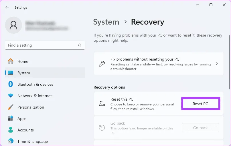 بازنشانی کامپیوتر شما را به حالت پیش فرض کارخانه باز می گرداند.همه فایل ها، برنامه های نصب شده و تنظیمات شما پاک میشوند، بنابراین باید از آن به عنوان آخرین راه حل استفاده کنید..هنگام انجام بازنشانی، باید گزینه ابر را انتخاب کنید تا هر گونه خرابی از رسانه نصب فعلی شما پس از انجام فرآیند بر رایانه تأثیر نگذارد..این یک فرآیند بسیار موثر برای رفع خطاهای رجیستری در ویندوز 11 است. Broken egistry مرحله 1: میانبر صفحه کلید Windows R را فشار دهید تا گفتگوی Run باز شود. مرحله 2: روی System در سمت چپ کلیک کنید، سپس روی گزینه Recovery در سمت راست کلیک کنید..