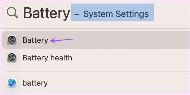 مرحله 1: Command Spacebar را فشار دهید تا Spotlight Search باز شود، باتری را تایپ کنید و Return را فشار دهید..