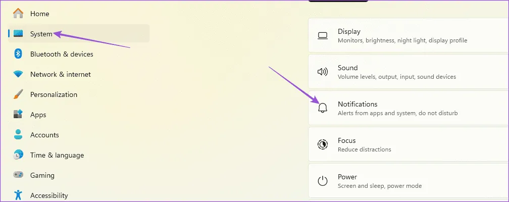 مرحله 2: از منوی سمت چپ گزینه System را انتخاب کرده و روی Notifications کلیک کنید.