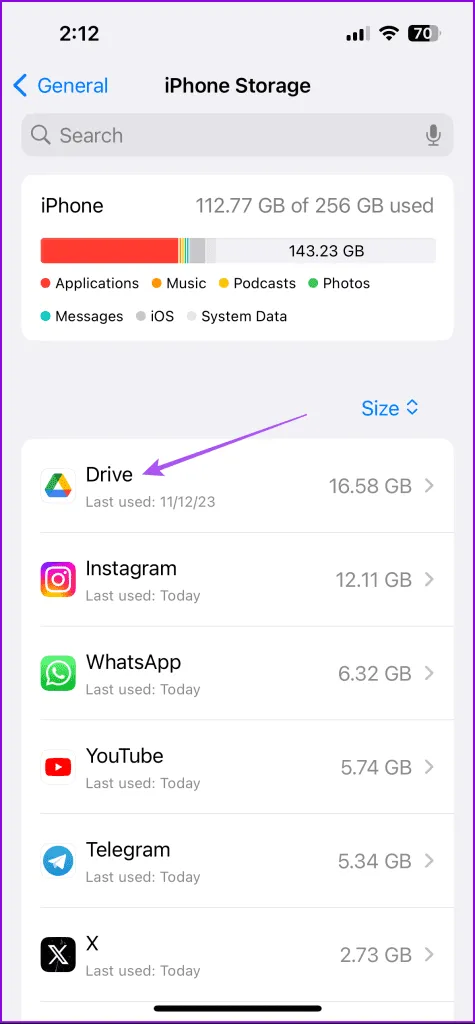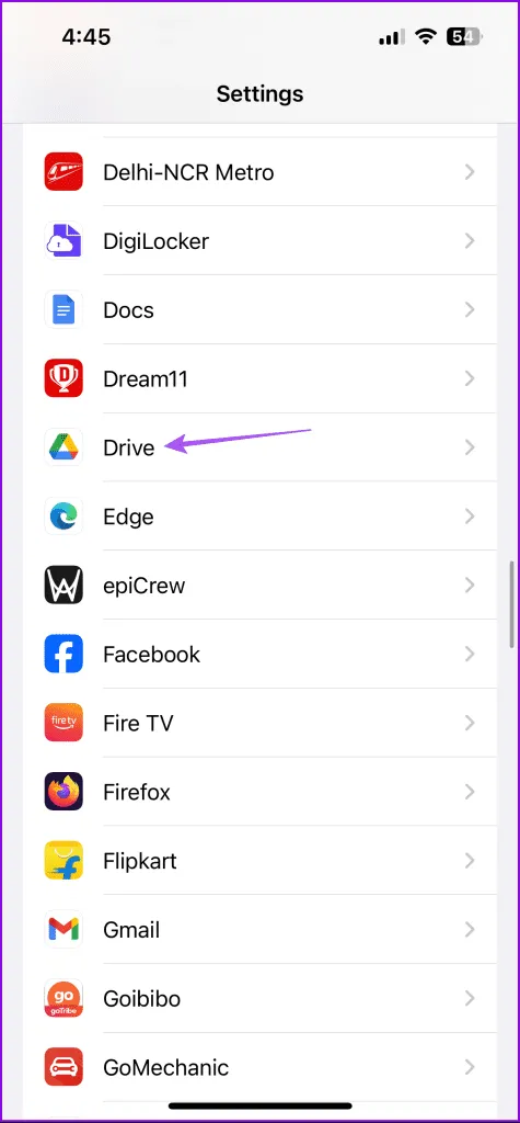 مرحله 1: برنامه تنظیمات را باز کنید، به پایین بروید و روی Drive ضربه بزنید.