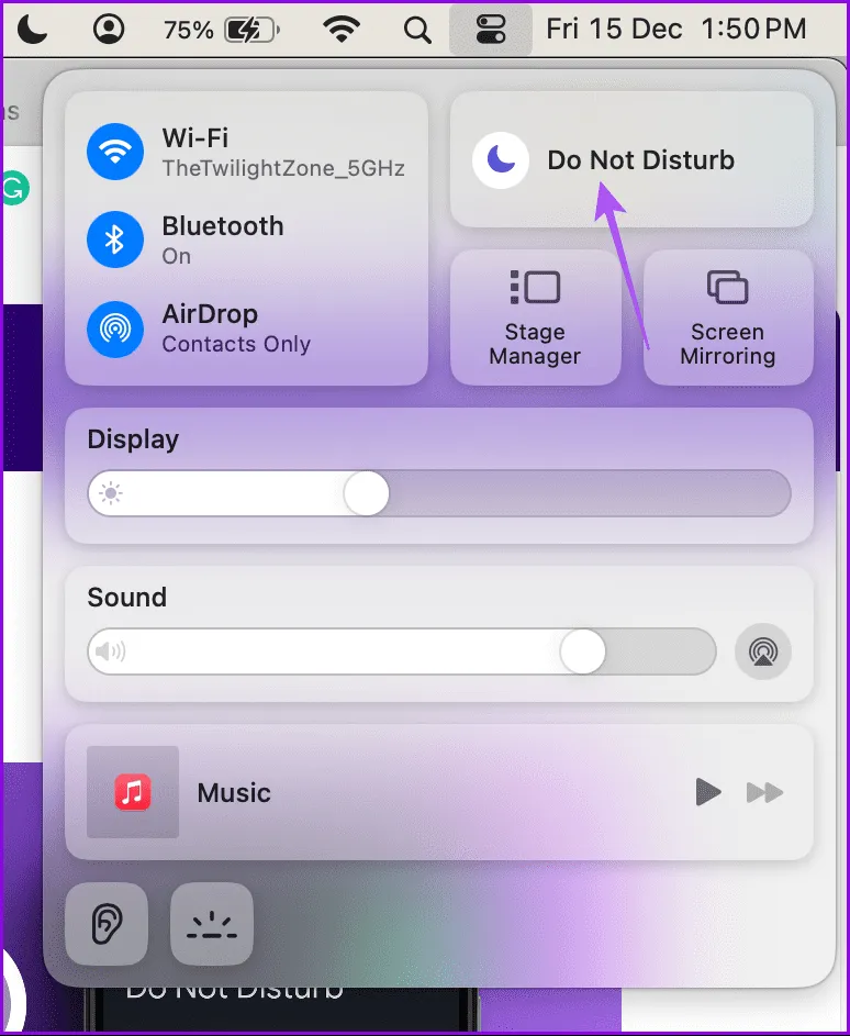 مرحله 3: مطمئن شوید که Do Not Disturb خاموش است.