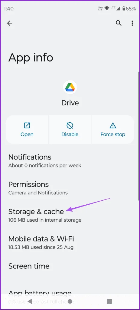 مرحله 2: روی Storage and Cache ضربه بزنید و Clear Cache را انتخاب کنید.