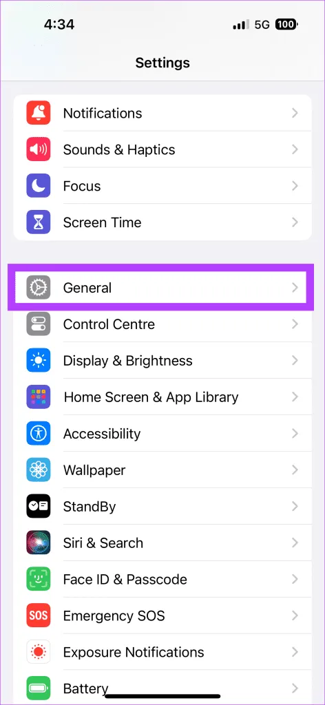 مرحله 1: برنامه تنظیمات را باز کنید و روی General ضربه بزنید.