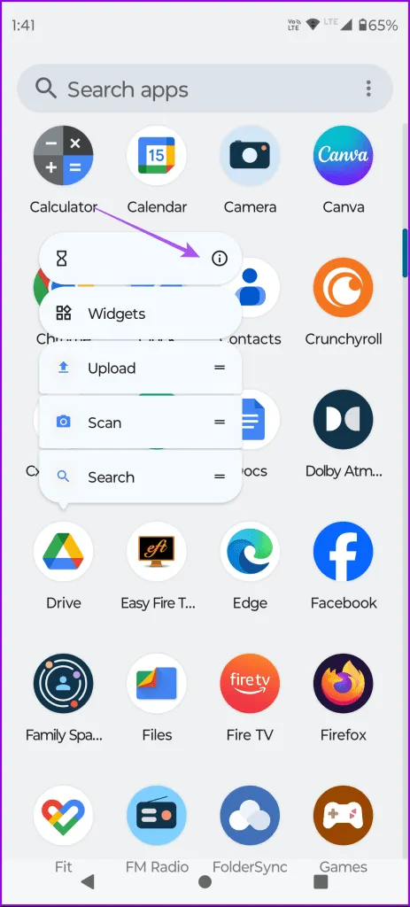 مرحله 1: نماد برنامه Google Drive را طولانی فشار دهید و اطلاعات برنامه را انتخاب کنید.